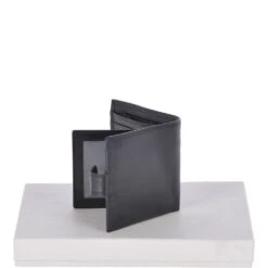 Vegetable Tanned 8 Card, ID & Coins & Zip Billfold Tab Leather Wallet Black : 1258-VT