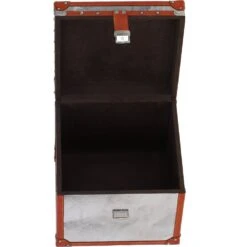 Wood And Aluminium Mirror Trunk With Brown Leather Trim And Stud Detailing: AGC 902
