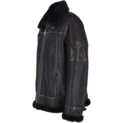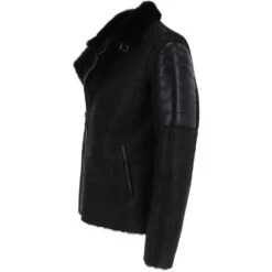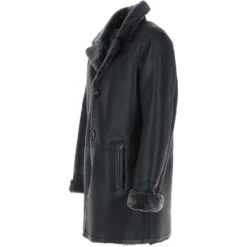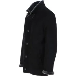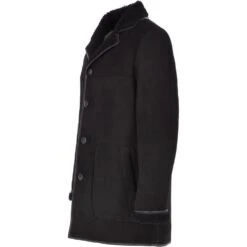 Men’s Luxury Single Breasted Sheepskin Coat Black/brissa: Barring