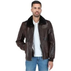 Mens Luxury Shearling Biker/ Flying Jacket Brown/ Cream : Torsten