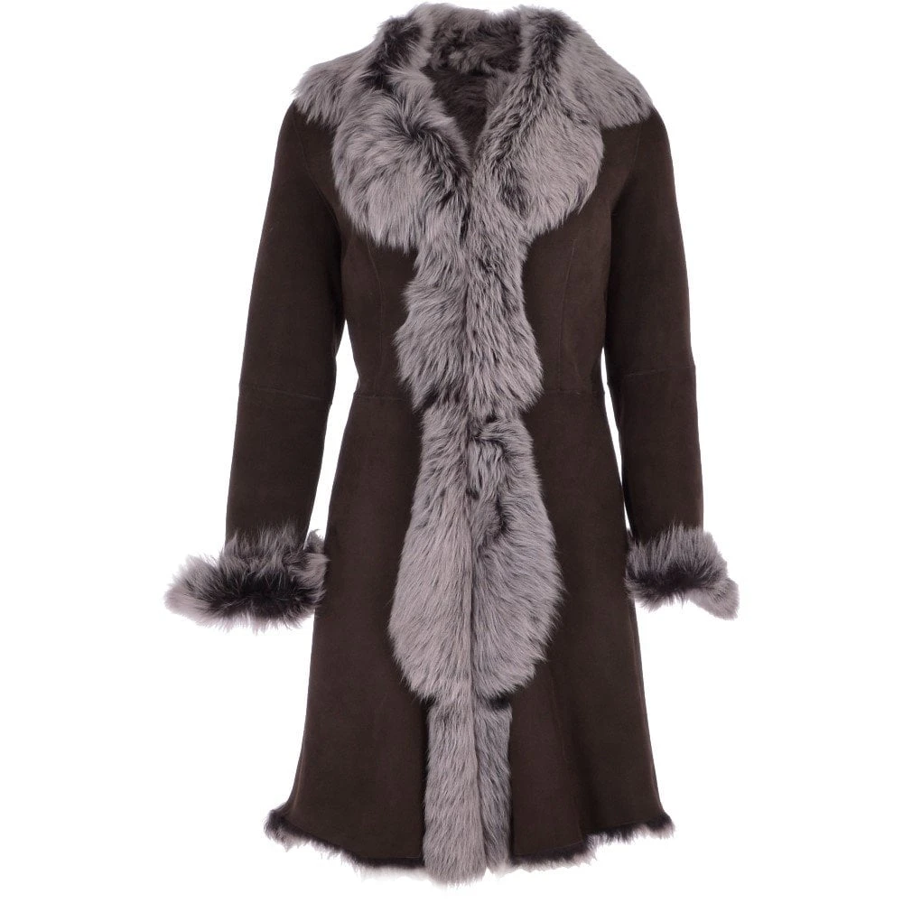 100% genuine long length shearling coat with hand buffed finish