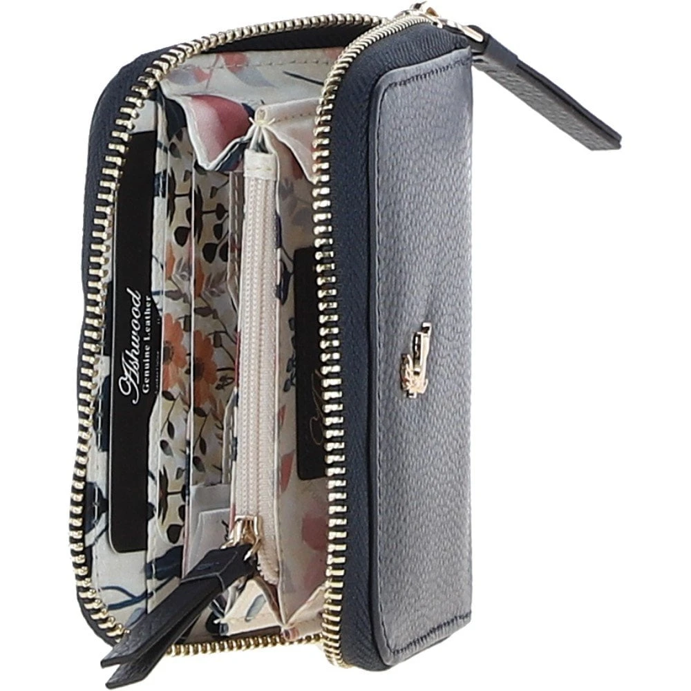 6 Card RFID Protected Zip Around Leather Purse Navy: S-5