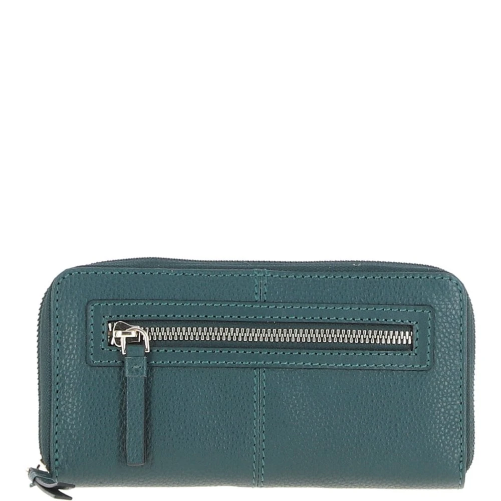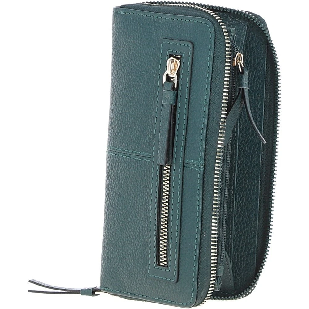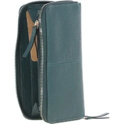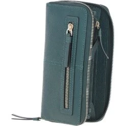 8 Card Zip Around RFID Protected Large Leather Purse Green: Z-70