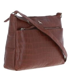 Designed with clean lines with a boxy silhouette, this croc print leather shoulder bag combines versatility with on trend luxury styling. Two handy pockets for all your essentials can be found on the external body. Open to find an internal zip pocket and two leather trimmed pockets.
