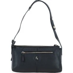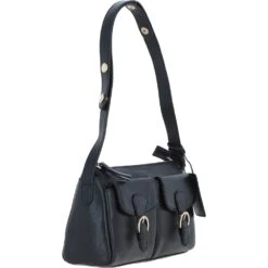 This chic shoulder bag combines both style and practicality, perfect for everyday use. Made from high-quality leather, it features an adjustable shoulder strap with press studs for a customizable fit. The main zip closure secures your belongings, while the interior includes a slip pocket and a zip pocket for organization. The bag is further complemented by two small magnetic flap-over pockets on the front and a rear zip pocket for additional storage. Finished with gold-colored hardware, fully ashwood-branded lining, and a stylish brand bag charm, this handbag is a functional and fashionable accessory.