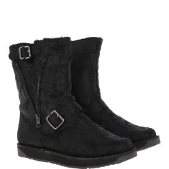 Classic 9″ Vintage Sheepskin Biker Boots : Black