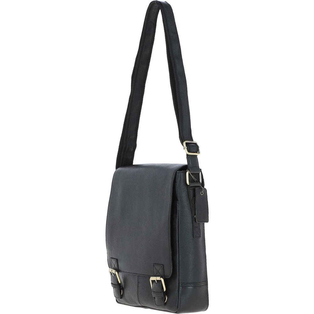 Classic A4 Leather Flap-Over Messenger Bag Black: Q-43
