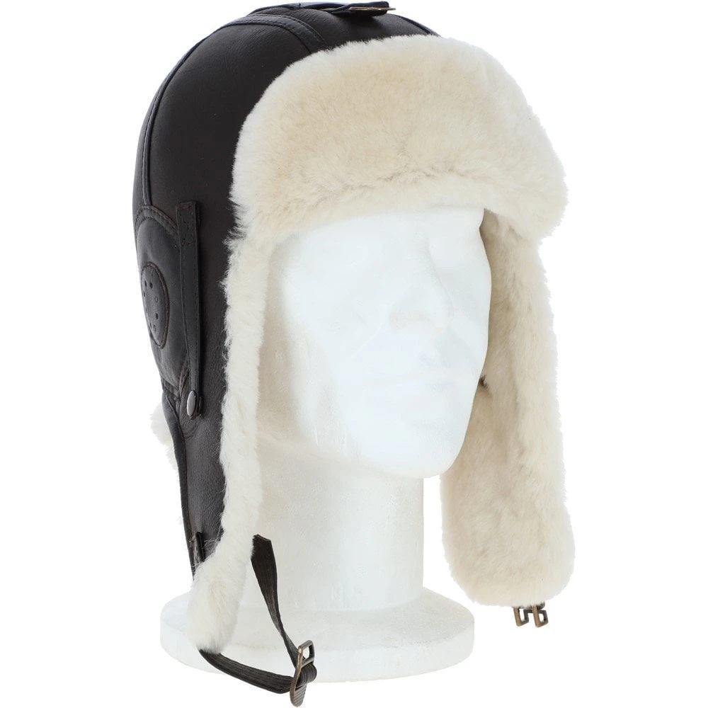 Classic Sheepskin Leather Pilot Hat Brn/white: Belmont