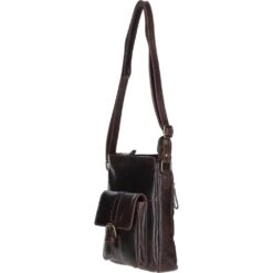Compact Leather Messenger Bag With Front Buckle Pocket Brown: TL-005