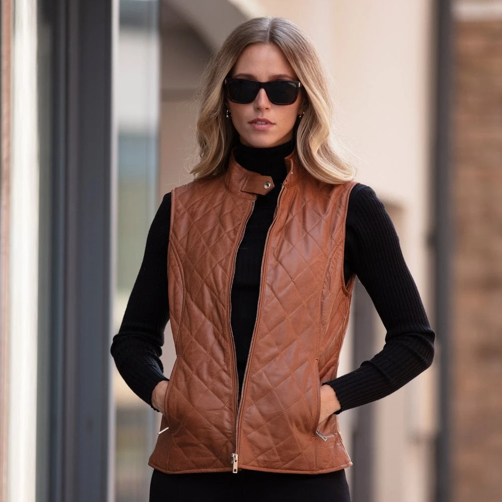 Womens Diamond Quilted Leather Gilet : Hampton RIGDEN GILLET