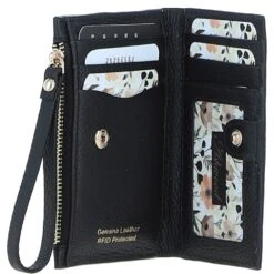 This elegant small ladies’ leather purse is crafted from genuine leather for a luxurious feel and lasting durability. Designed for security and style, it features RFID protection to safeguard your cards from unauthorized scanning. Perfect for everyday use or a chic addition to any handbag!