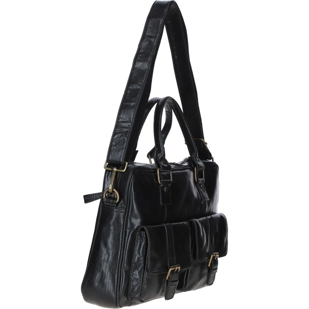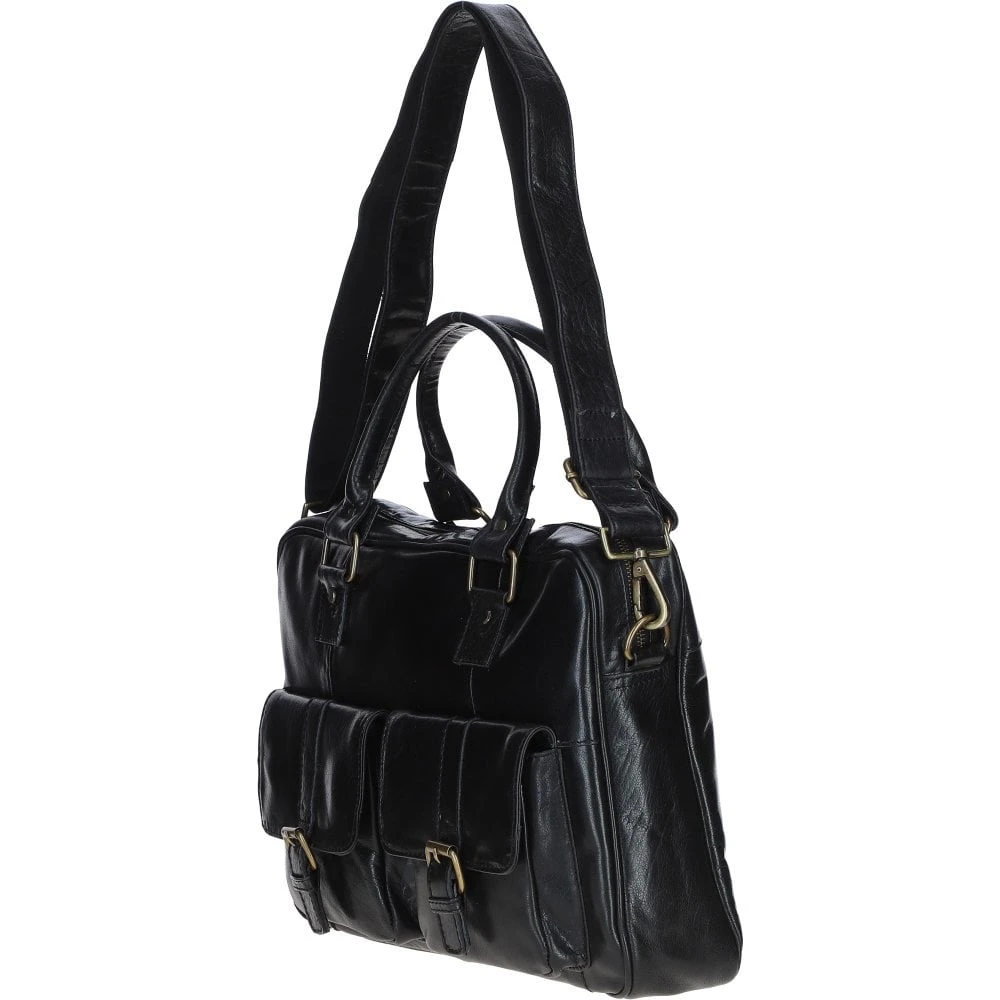 This versatile leather laptop bag offers a perfect blend of style and functionality for professionals on the go. Crafted from premium leather, it features a spacious main compartment, two front buckle pockets and a zip pocket for easy access, and an adjustable, detachable shoulder strap.