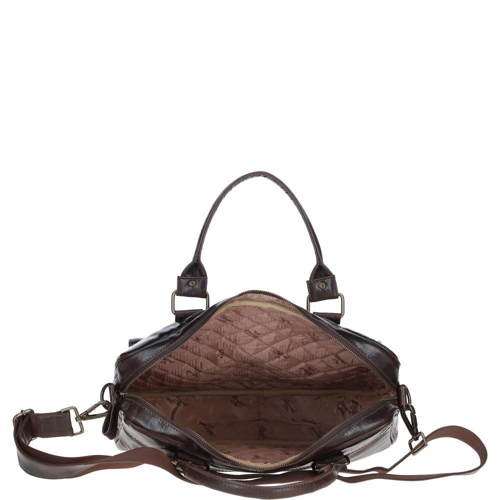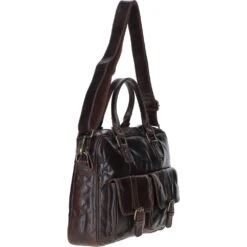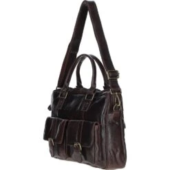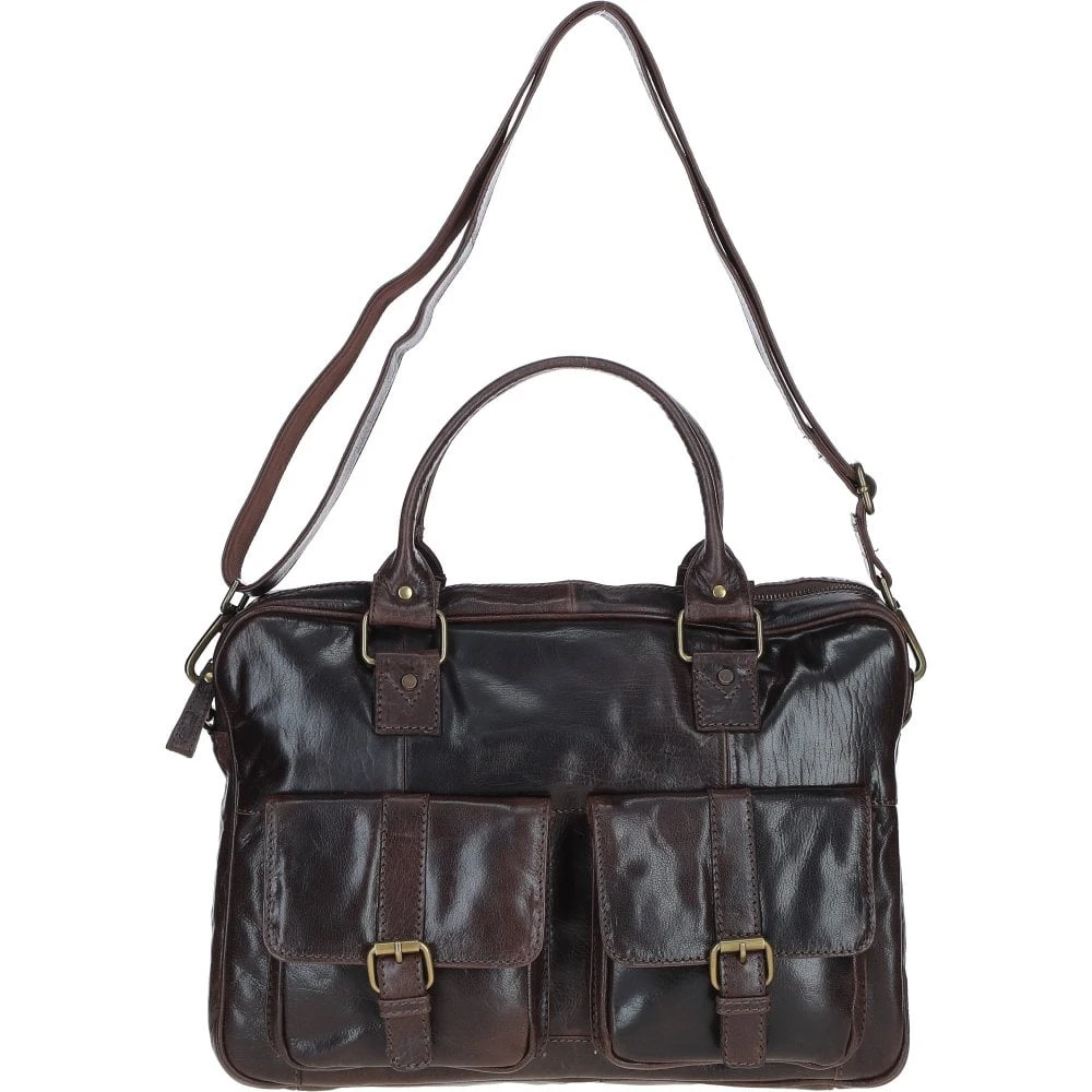 Executive Leather Laptop Bag With Buckle Pockets Brown: TL-008