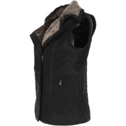 Fitted Leather Gilet With Faux Fur Collar Black/snu : Cumbria