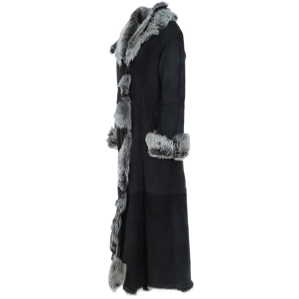 Ashwood Full Length Toscana Suede Leather Coat Black: Squisita By Leather Company