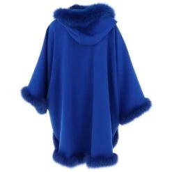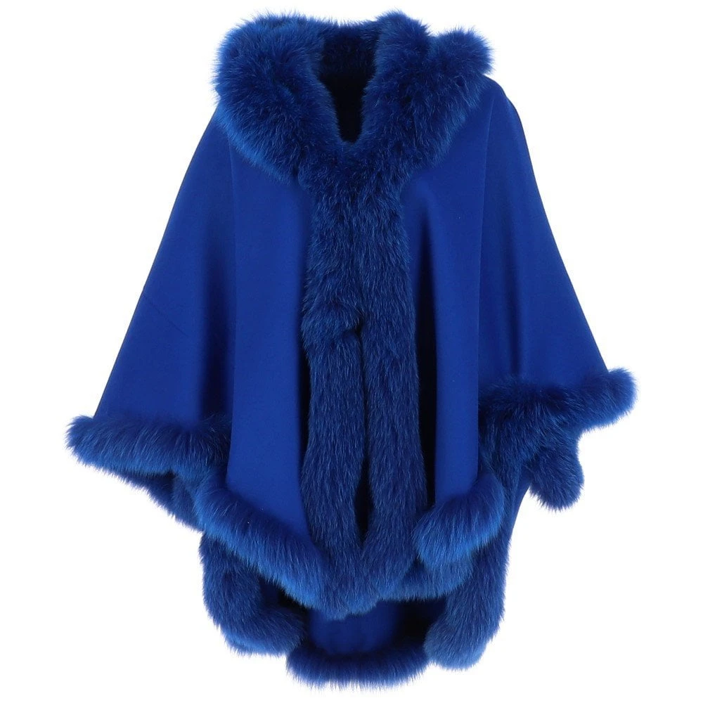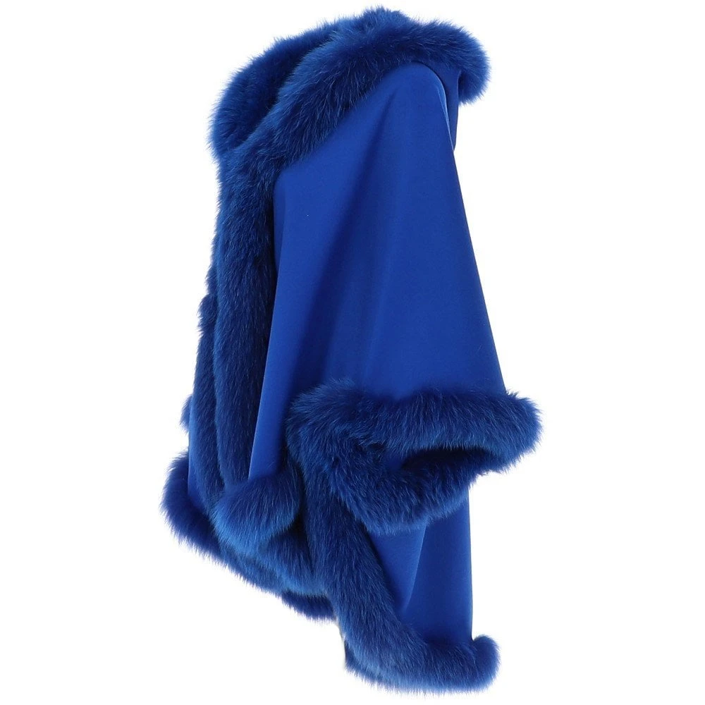Ponchos are timeless classics and smart investments, pretty tones of navy black coloured wool and a delicate twisted black fur trim adds indulgence for lovers of ponchos. The detachable fur trimmed hood adds pure warmth and character to the poncho design. The voluminous wool blend and natural fur is the perfect layering over piece for those fashion outings and wintry seasons