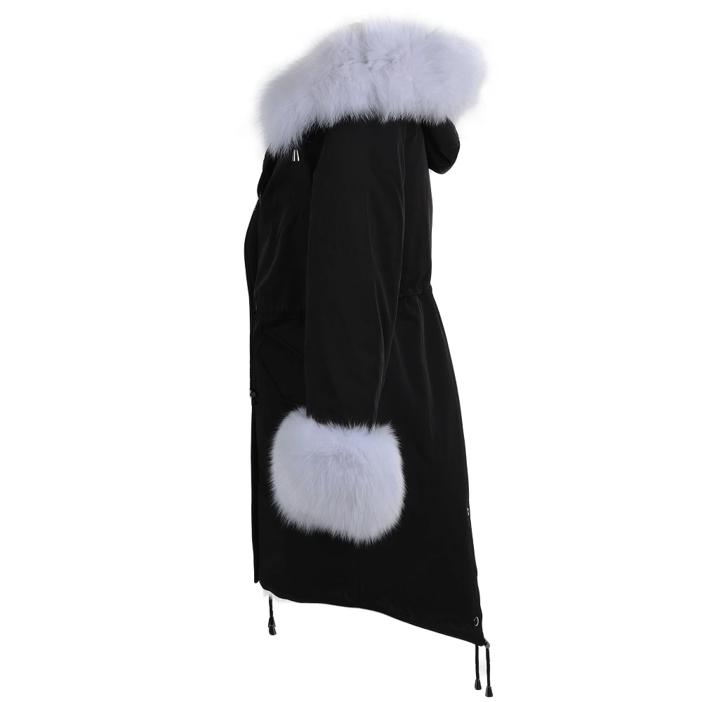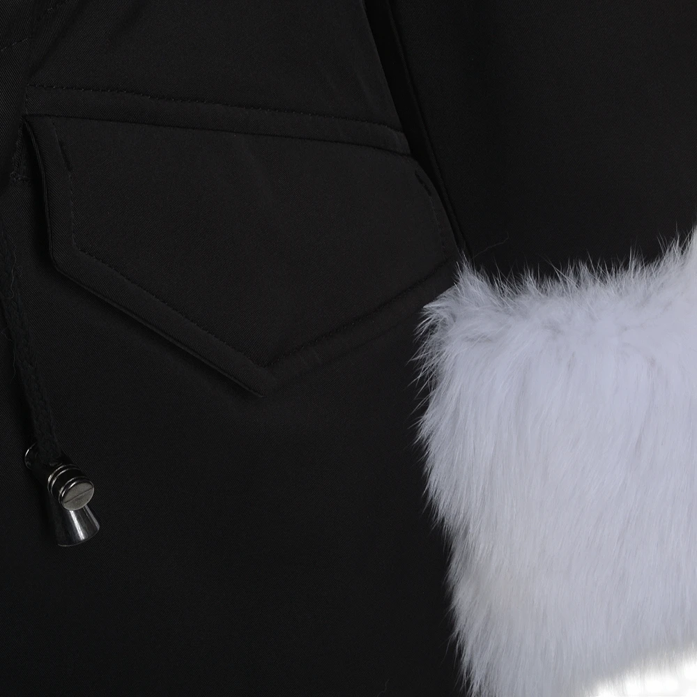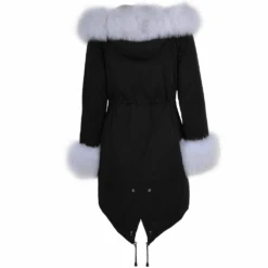 Hooded Toscana Tipped Fur Parka With Detachable Fur Trim Lining Black/white : Kaylee