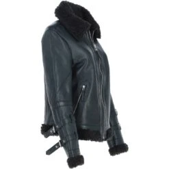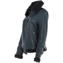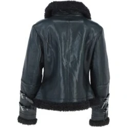 This stylish Ladies Real Sheepskin Aviator Jacket with Faux Fur Lining combines classic design with modern comfort. Crafted from premium sheepskin leather, it features a cozy faux fur lining for added warmth. The aviator style includes buckle strap details on the cuffs, a fold-over faux fur collar, and zipped side pockets for practicality. Its timeless silhouette makes it versatile for casual outings and cold-weather wear.