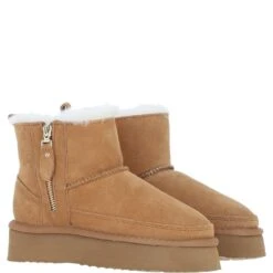 Stay cosy and stylish with these chic sheepskin boots. Crafted from premium suede, they feature a plush, genuine sheepskin lining for exceptional warmth and comfort. The durable rubber sole provides excellent grip, perfect for all-weather wear. A side zip closure ensures easy on and off, while the sturdy midsole offers reliable support.