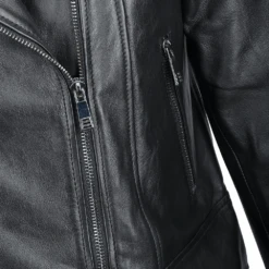 A chic short black biker jacket crafted in a beautiful vegetable tanned eco friendly leather. With its simple clean lines, biker detailing, timeless styling, complete with a hand rubbed finish. Expect a side zip fastening, two functional zip pockets and biker zip cuffs.