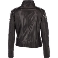 Ladies Vegetable Tanned Leather Studded Biker Jacket Black : Osha