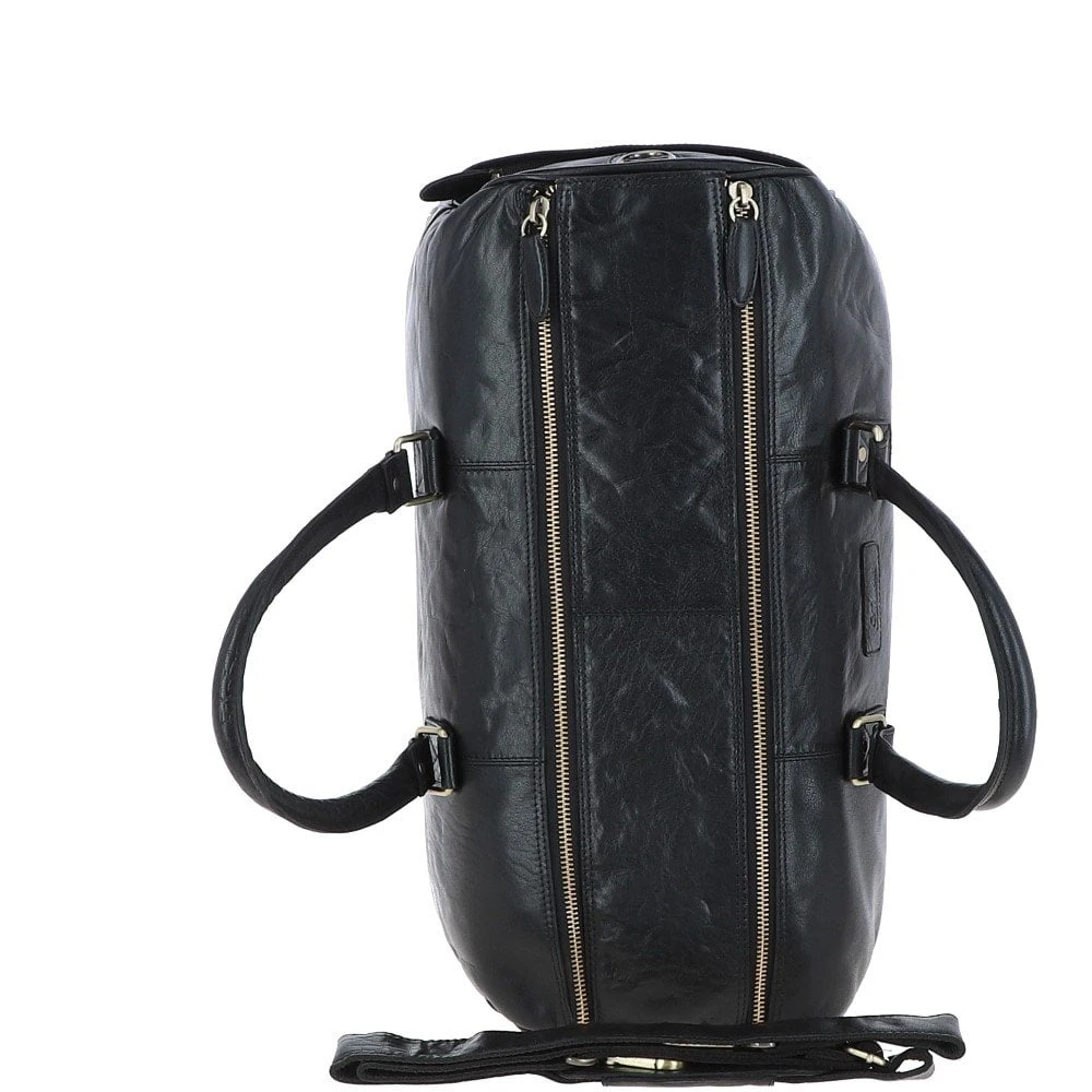 This large holdall is crafted in luxury ‘Oily Buff Crumble’ leather, coloured in black. Crafted in full grain leather with an antique vintage wash and hand waxed finish. The beauty of this is it will add more character to the product with use and wear.
