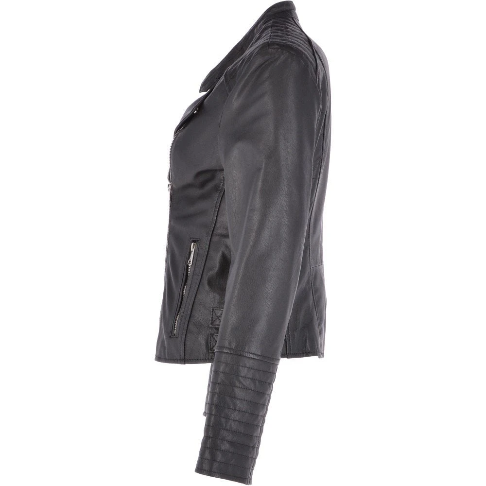 Handcrafted modern black biker in a soft buttery leather. With its simple clean lines, biker detailing, timeless styling, complete with a hand rubbed finish.  The Casey ladies leather jacket is a must have for any woman looking for a wearable modern biker style jacket which can be worn with any type of apparel.
