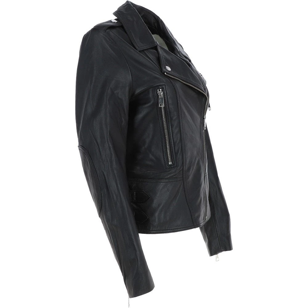 Meghan is modelled after traditional biker style. Meghan is aregular fit and is made from lightly grained leather along with zip pockets and side buckles for that extra touch. Can be worn with jeans, leggings or dresses.