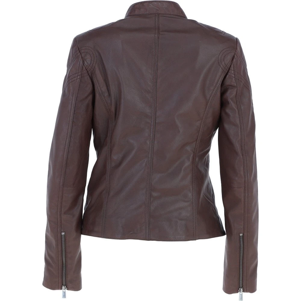 This luxury ladies biker style enhances the idea of rebellion and adventure. With modern fashion detail, classic biker stitch detailing, classic sleeves with biker zips. Crafted from quality graded nappa leather.