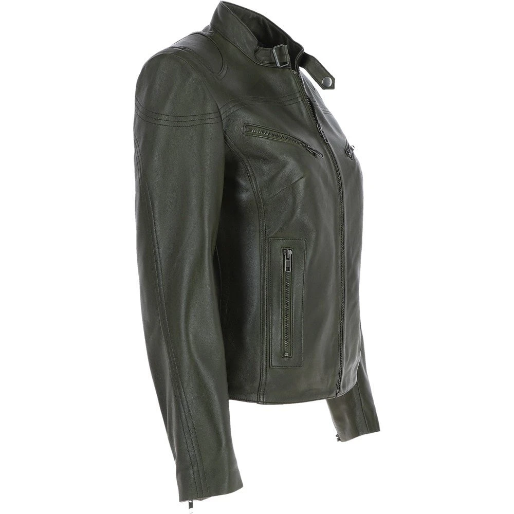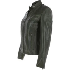 Leather Biker Jacket Green : Lola
