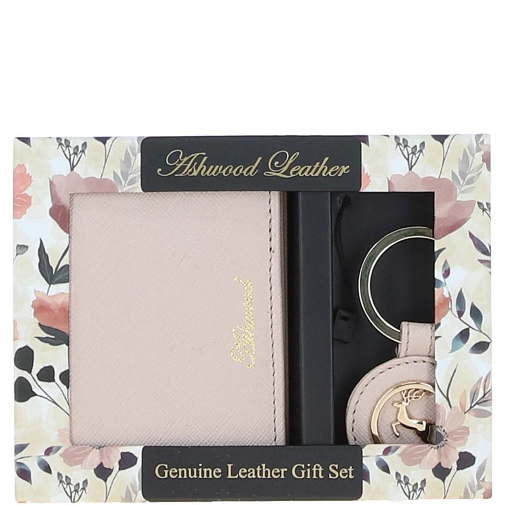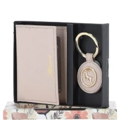 Ladies Leather Card Holder with Mirror & Key Ring Gift Set Blush :slg-31243