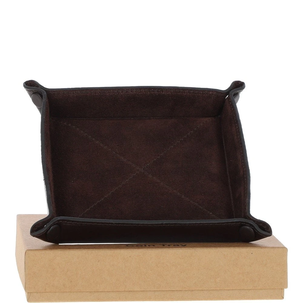 Crafted from a robust leather this all leather tidy tray is an ideal gift idea. Coloured in a beautiful black, brown, or chestnut. Can be folded flat for storage.