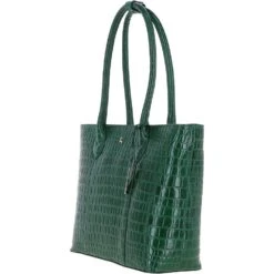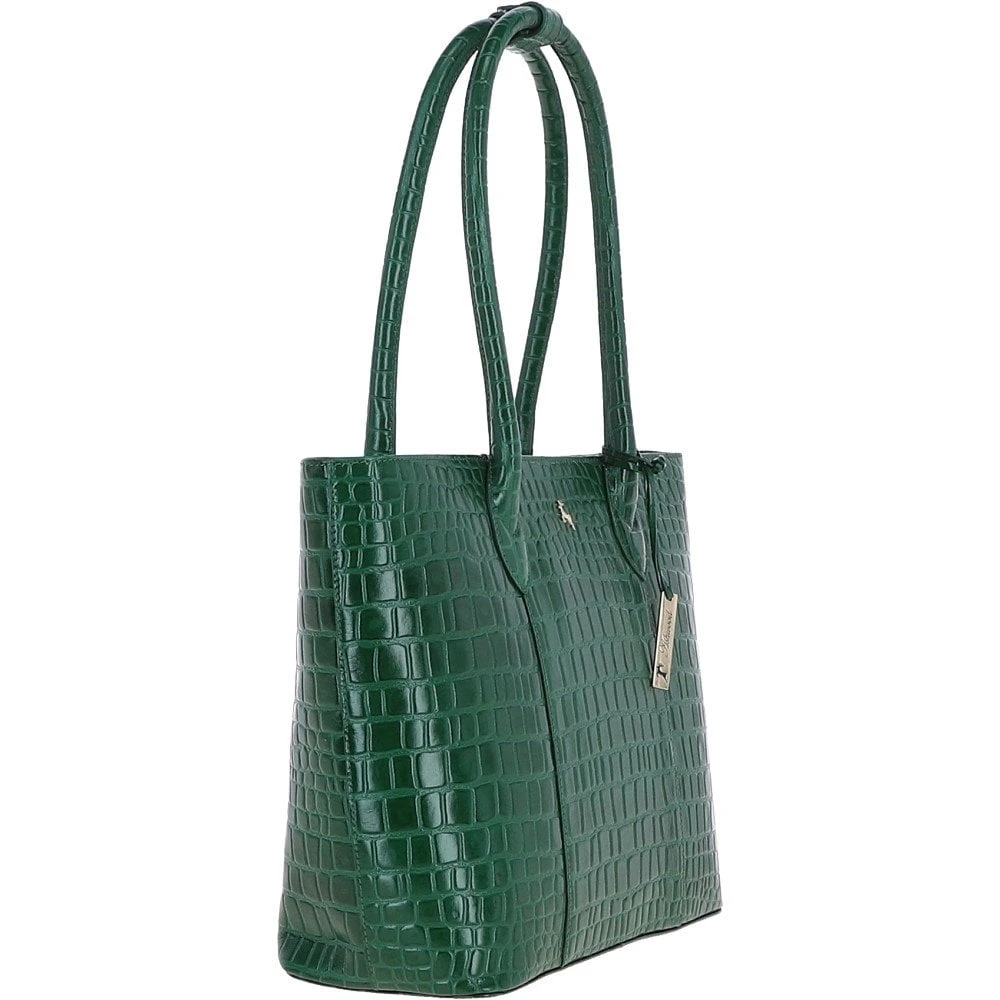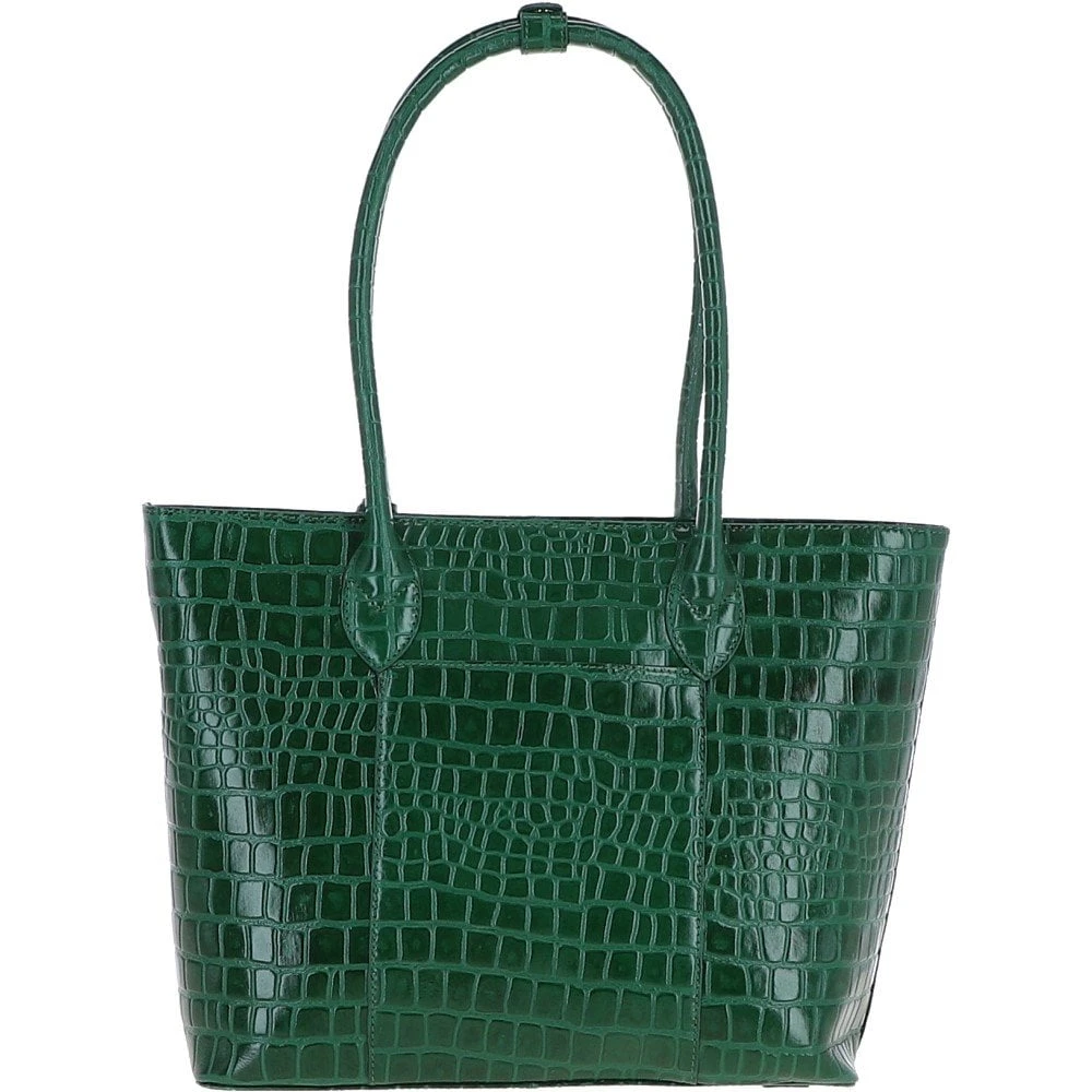Ashwood Leather Crocodile Print Shopper Bag Green: C-56