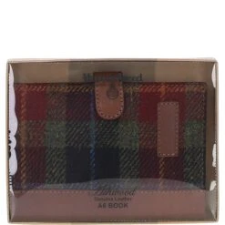 Ashwood Leather & Harris Tweed A6 Notebook Tan/Green/Red: TW-18-08-TR