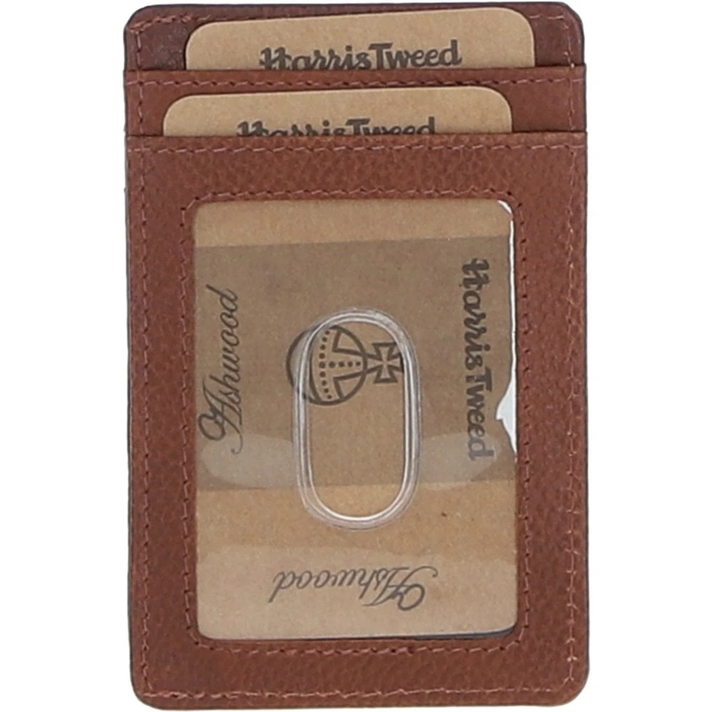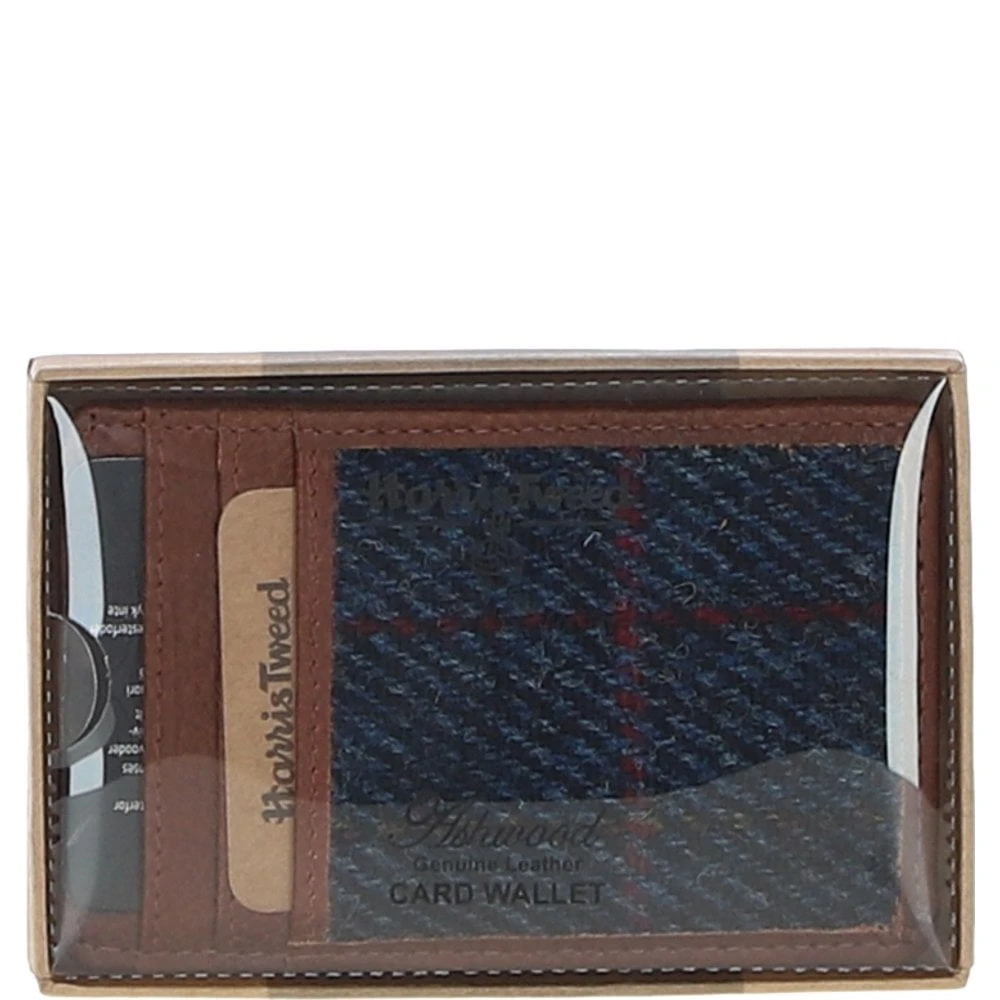 Ashwood Leather & Harris Tweed Card Holder Tan/Navy: TW-15-011-TN