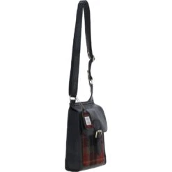 Ashwood Leather & Harris Tweed Crossbody Bag Black/Green/Red: TW-24-07-BR