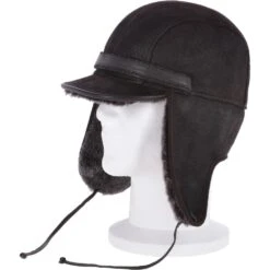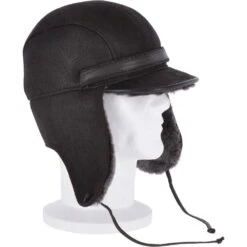 Leather Hunting Trapper Hat With Sheepskin Fur : Dakota