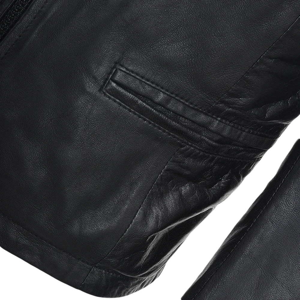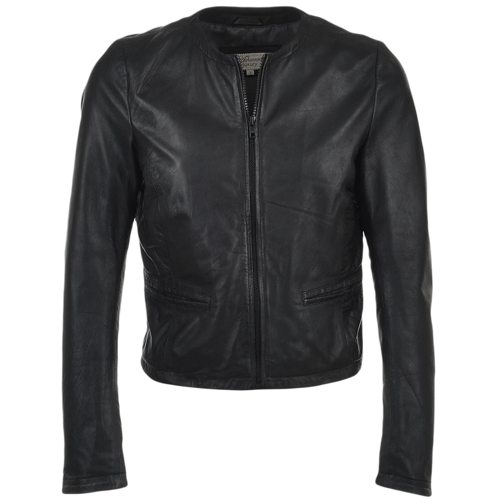 Leather craftsmanship at its best the collarless lightweight leather jacket comes in the choice of smooth black or blue or opt for the vintage wash and hand waxed effect in the coffee or green. Clean lines, attention to detail. Structured and elegant cut in a beautiful soft nappa leather.