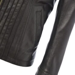Leather craftsmanship from UK based Ashwoods design team at its best introducing a fusion of modern with practicality once more. With the choice of the smooth black finish or the vintage wash and hand waxed effect in the red or grey finish. Beautifully crafted leather, structured and elegant cut with fine stitching leather piping. Finished off with a perfect nehru style collar stand. details not found on any ladies leather jackets of this kind. Pleased to have it amongst Leather Company’s catalogue and collection.