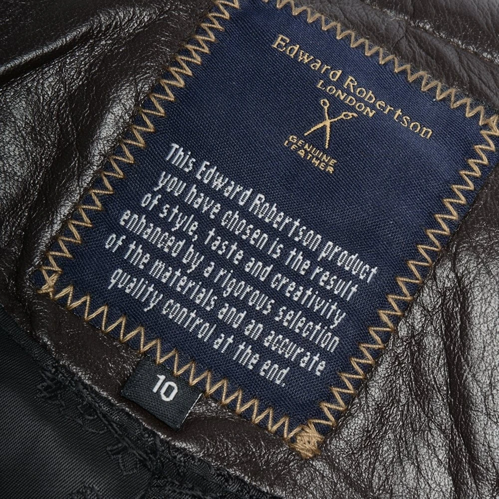 Expect a timeless design and quality craftsmanship for this collarless biker jacket. Comes in a choice of smooth black or the vintage wash and hand waxed effect coloured in brown or bone. Clean lines, attention to detail intricate applique leather on leather trim detail styling running along the front and around base of the neckline. Beautifully crafted leather, structured and elegant cut.