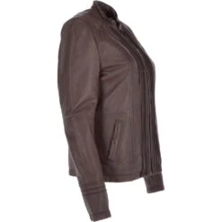 Leather craftsmanship from UK based Ashwoods design team at its best introducing a fusion of modern with practicality once more. With the choice of the smooth black finish or the vintage wash and hand waxed effect in the rest of the available colours. Beautifully crafted leather, structured and elegant cut with fine stitching leather piping. Finished off with a perfect Nehru style collar stand. Details not found on any ladies leather jackets of this kind. Pleased to have it amongst Leather Company’s catalogue and collection.