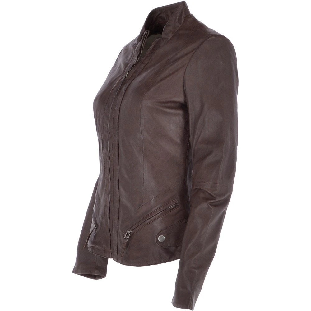 Versatile, modern and minimalist styling, this luxury leather jacket adds clean lines for a flattering urban feminine look. Crafted in soft nappa leather, attention to detail stitch seam detailing, with two functional zip pockets for your handy essentials.