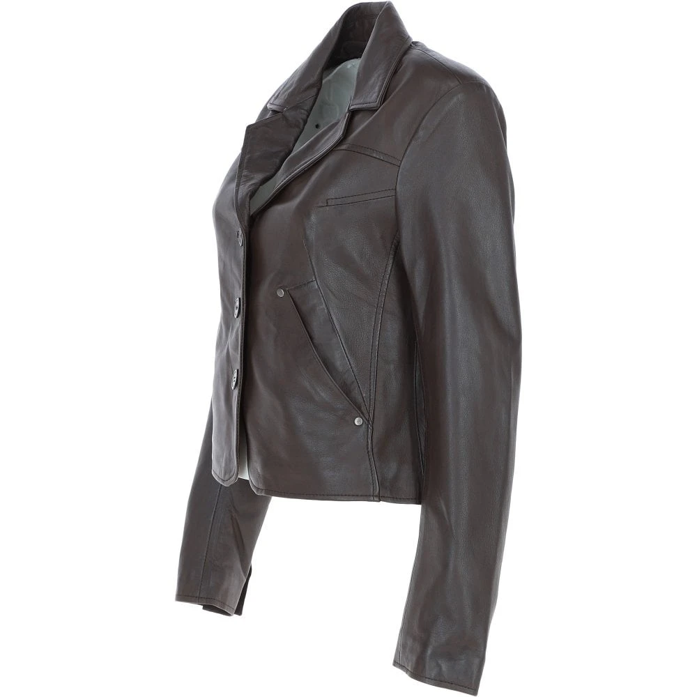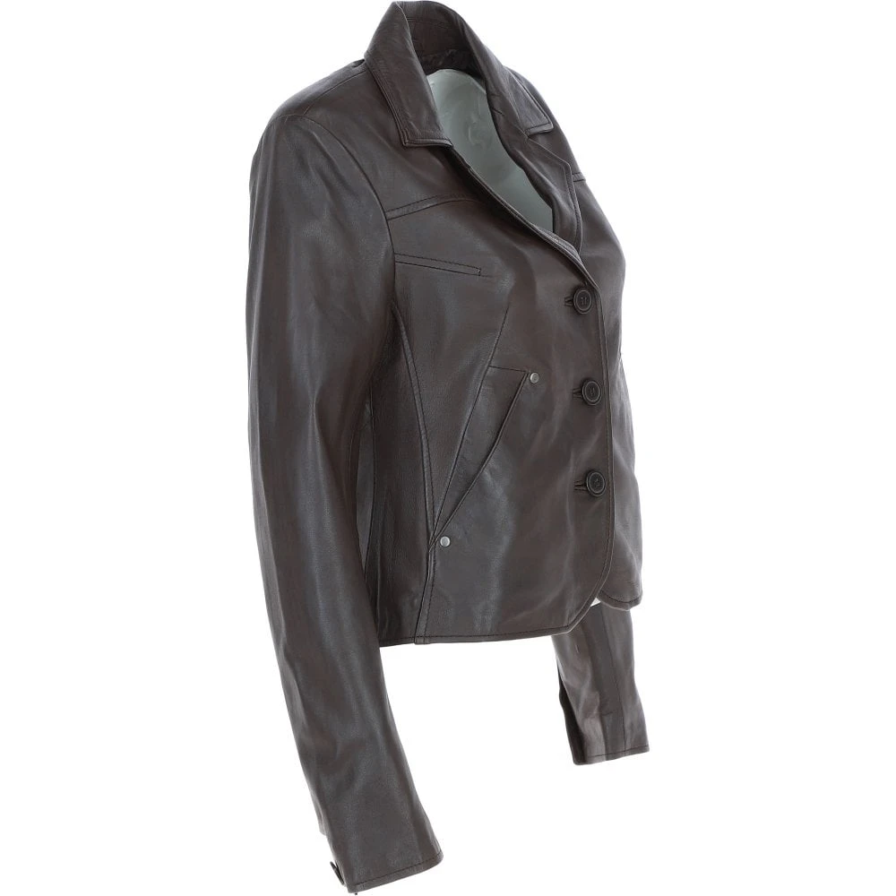 The fitted curvaceous sultry cut of the classic 1676 ladies three button blazer. Crafted using quality graded hides to match the slim tailored silhouette. Choose from either the classic smooth finish in the black, or the vintage wash and hand waxed effect found in the leather finish. A sheer style trend piece for your wardrobe.