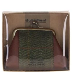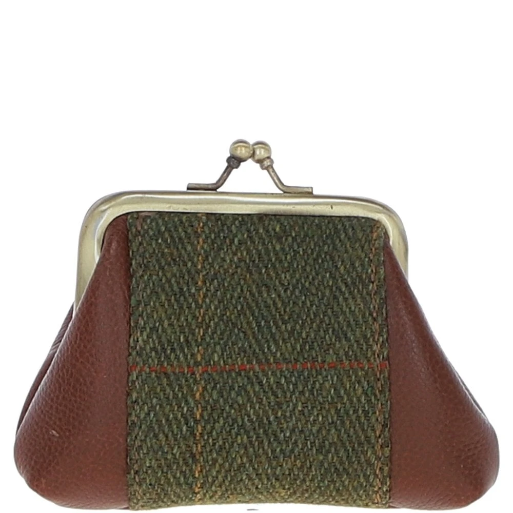 Ashwood Leather & Tweed Classic kiss-lock Purse Tan/Green Check: TW-13-010-TGNH