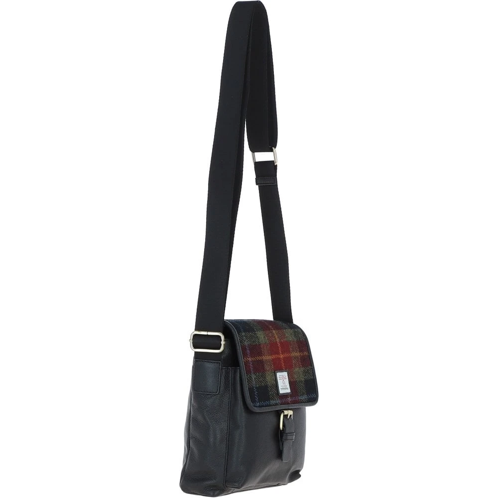 Ashwood Leather x Harris Tweed Bodybag Black/Green/Red: TW-41-07-BR