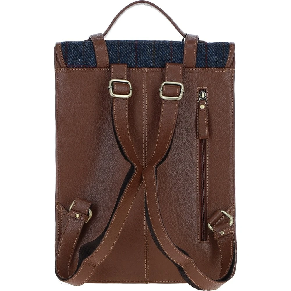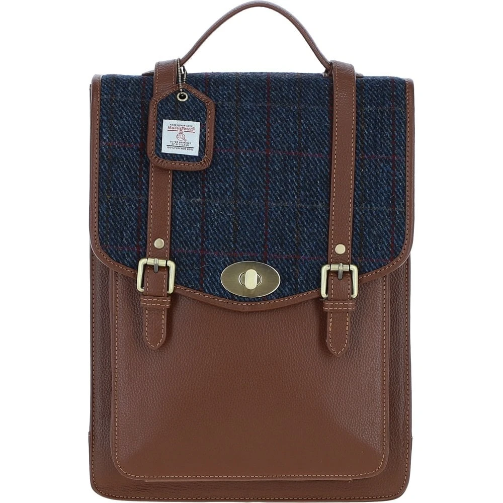 Ashwood Leather x Harris Tweed Large Backpack with Twist Lock Tan/Navy: TW-38-11-TN