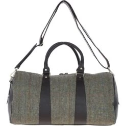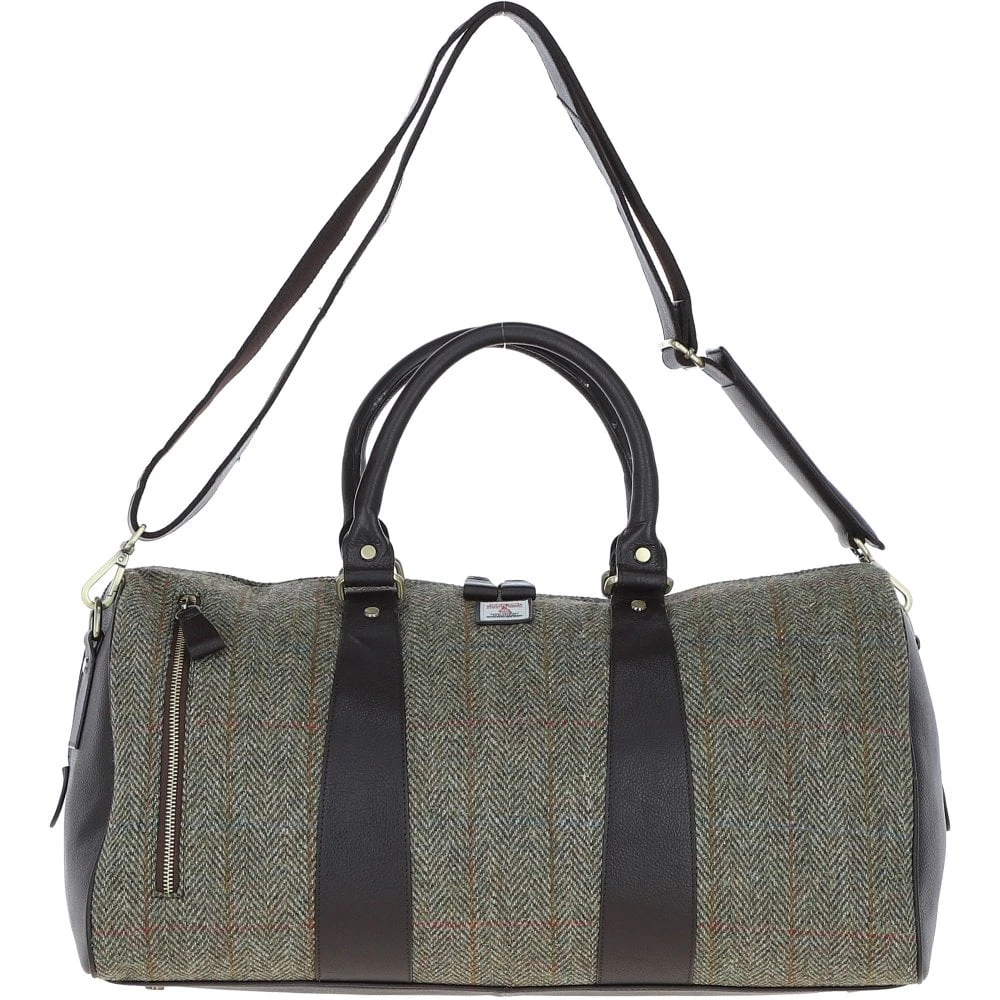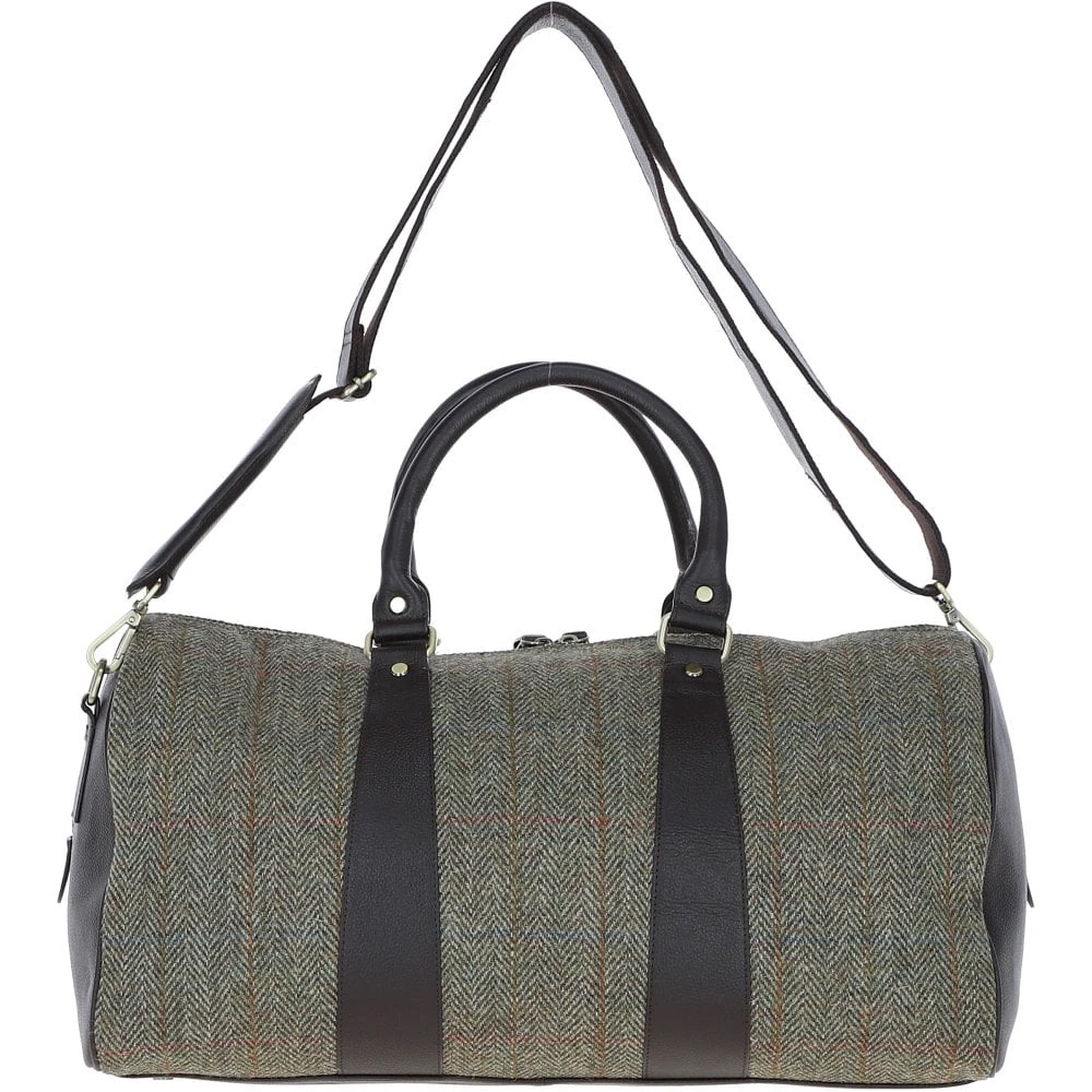 Ashwood Leather x Harris Tweed Large Holdall Brown/Green: TW-47-09-BG
