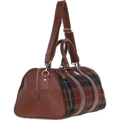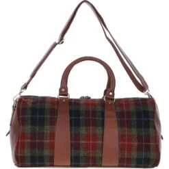 Ashwood Leather x Harris Tweed Large Holdall Tan/Green/Red: TW-47-08-TR