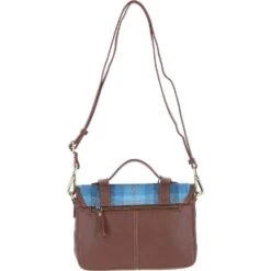 Ashwood Leather x Harris Tweed Medium Satchel Bag with Twist Lock Tan/LT Blue: TW-34-05-TB