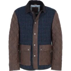 Ashwood Leather x Harris Tweed Men’s Diamond Quilted Stitch Details Casual Jacket Brown/Navy: TW-907-011-BN